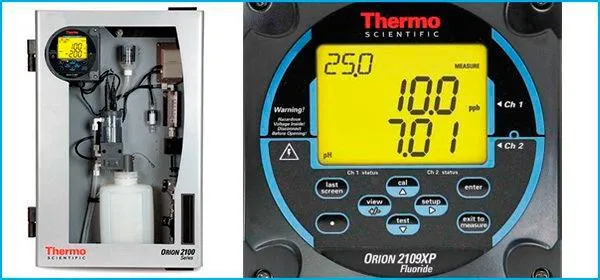 Como pioneiro na tecnologia de eletrodo de fluoreto, o monitor de fluoreto Orion 2109XP é baseado no Método de Teste Padrão para Íon de Fluoreto em Água (ASTM D 1179-04). O Orion 2109XP fornece as medidas de flúor da mais alta qualidade para água potável exigidas pelo Safe Drinking Water Act (1974) para controlar com precisão dosagens de flúor entre 0,7 a 0,8 ppm (700 a 800 ppb), graças ao seu exclusivo sistema de difusão para acidificar a amostra de forma contínua e automática, utilizando um tubo de difusão que fica mergulhado num frasco com ácido fórmico, no qual passa a amostra, antes de ser analisada na câmara de fluxo, sem contato direto com o ácido, dispensando assim o uso de TISAB. O monitor de flúor Orion 2109XP oferece precisão, confiabilidade e facilidade de uso para melhor atender às demandas de análise de flúor com total garantia. O Orion 2109XP maximiza o tempo de atividade e mantém sua planta em operação perfeita, oferecendo versatilidade e desempenho incomparáveis.