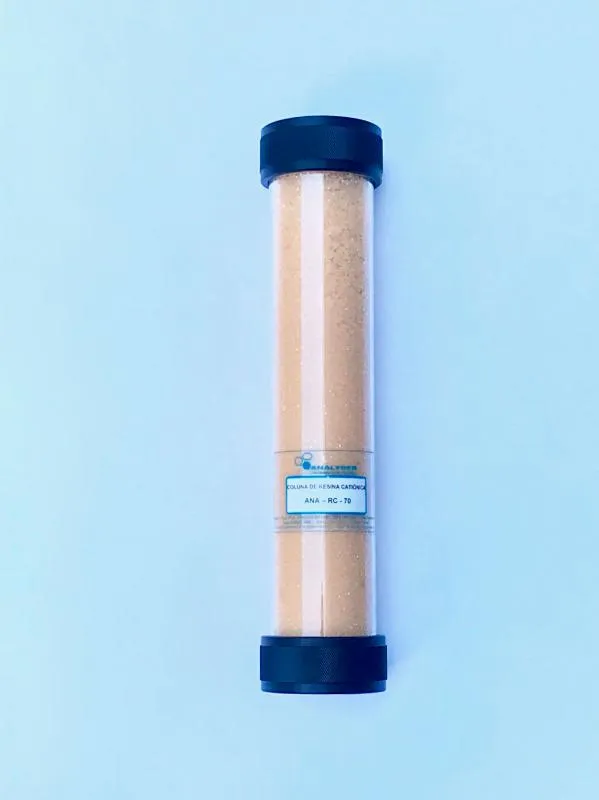 A coluna de resina catiônica é um produto empregado em sistemas de condicionamento de vapor e condensado para a medição da condutividade catiônica do vapor gerado em caldeiras que alimentam turbinas de geração de energia elétrica. Quando a amostra líquida do vapor passa pela coluna de resina catiônica, há a captura de íons catiônicos da amostra e liberação de íons de hidrogênio da resina catiônica.