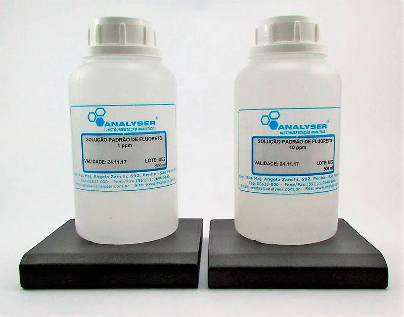 É sempre importante proporcionar informações, treinamentos e instruções apropriadas para o responsável em operações com solução padrão de fluoreto, estas são vendidas em frascos de até 500 ml.