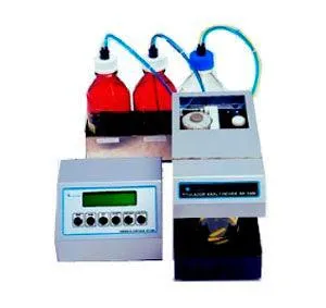 O titulador Karl Fischer é responsável por determinar automaticamente a quantidade de água nas mais diversas amostras, até mesmo em exemplares pequenos. O equipamento é regido por um sistema de bombas, que enchem e descartam os regentes utilizados na análise. Dessa forma, diminui-se a quantidade de umidade interna no frasco do titulador Karl Fischer, de modo a facilitar o trabalho do operador.